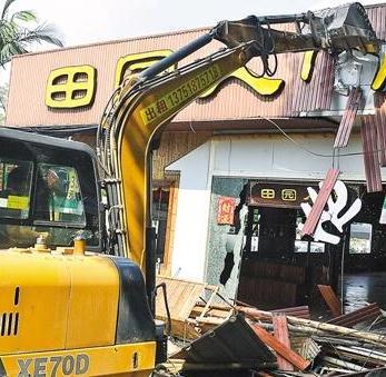 广州荔湾:涌边违建食肆 钩机1个多小时全部拆除