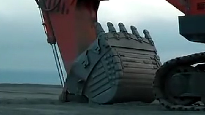 【热门】实拍日立百吨级大型矿山挖掘机 汽车都没有铲斗大