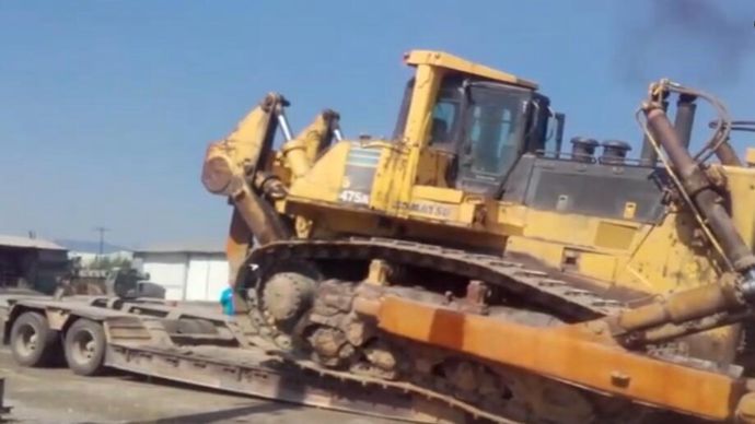 大型工程车上板车就是不容易,看看老外是如何做的?