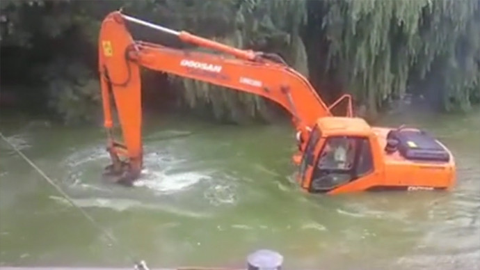 实拍挖掘机过河,很牛的开局,最后居然会这样!