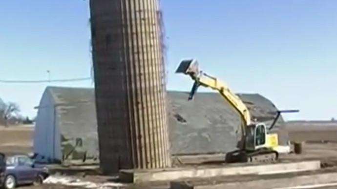 铲车拆房子,一铲下去就倒塌铲斗被压