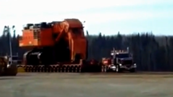 霸气!100多个轮子还不是照样被铲车压的走不动