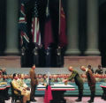 实拍一台强大的机械,在平地上快速铺混凝土板
