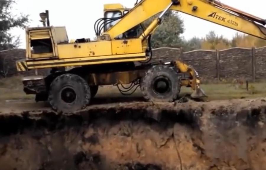 挖机师傅:兄弟帮推一下,轮子跑偏了, 兄弟:拼老命推了,别垮掉了
