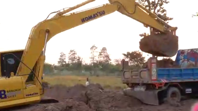 奇葩挖机给拖拉机装满土后不按喇叭提示,直接推它一铲斗