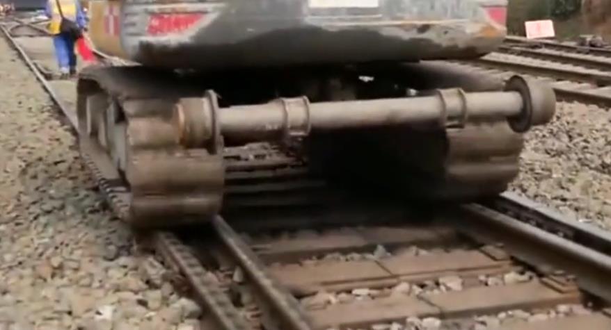 铁轨上玩挖掘机,不得不佩服老司机的技术,目测驾龄最少有10年!