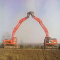 挖掘机清理水塘淤泥,这机械臂可真长啊!