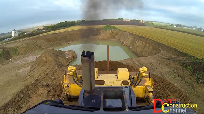 老司机开挖掘机挖池塘:挖掘难度很大!