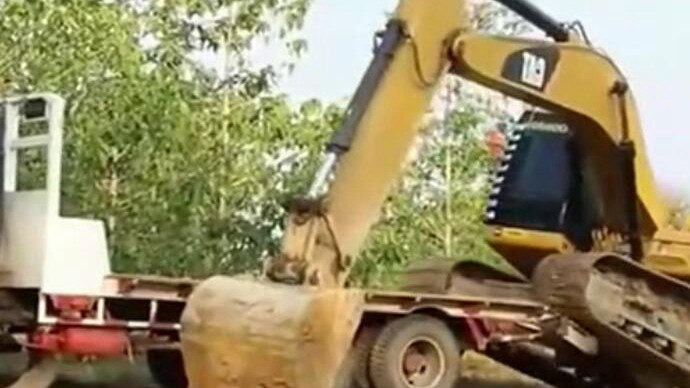 10吨不到的拖车拉24吨的挖掘机 ,看老司机怎么做到
