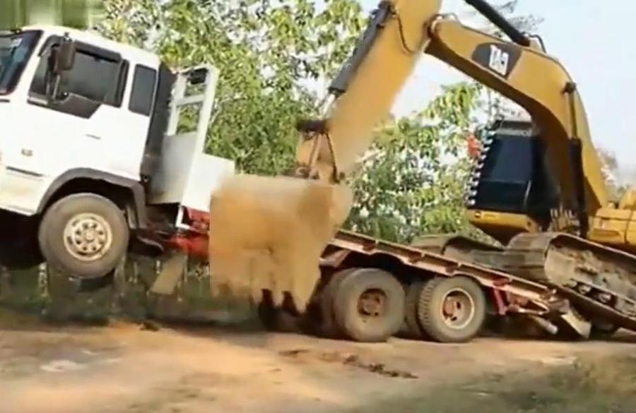 10吨不到的拖车拉24吨的挖掘机 ,老司机怎么做到的?