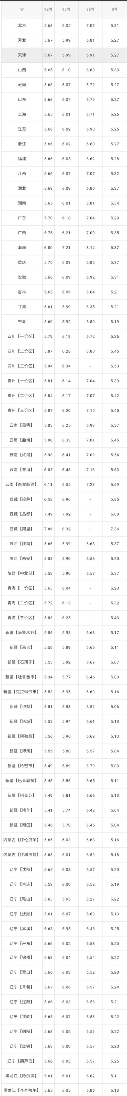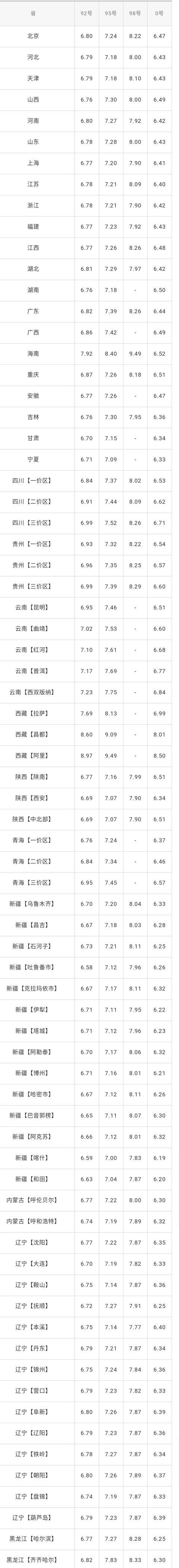 全国油价调整信息:6月12日调整后:全国92、95号汽油价格表