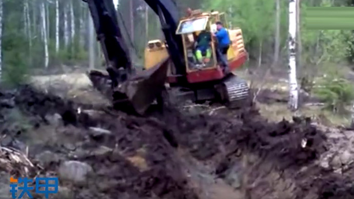 开挖机游全国的路上遇到山体滑坡带着继续前行
