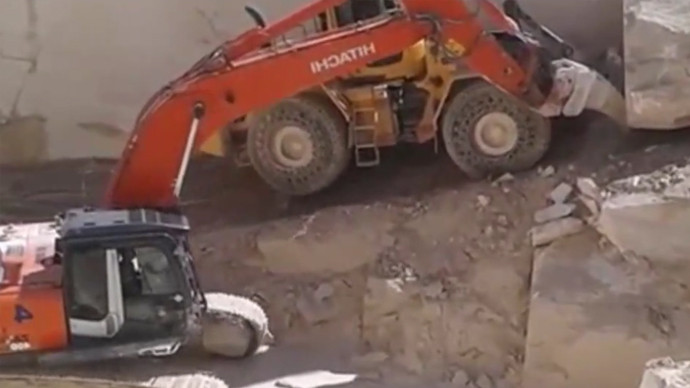 工地实拍惊人一幕,2台铲车2台挖土机移动一块巨石