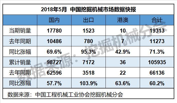 2018年5月挖掘机械行业数据快报