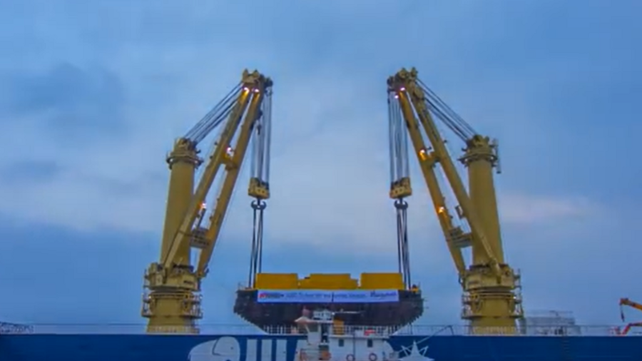 码头吊装3000吨船体, 难得一见的壮观场面!