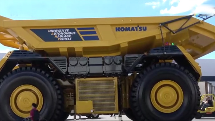 【热门】416吨翻斗车被遥控器牵着走,时速64千米遥控者跟都跟不上!