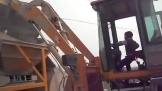 市区现挖掘机 司机竟是个孩子 3岁娃开挖掘机十五分钟过两条街道