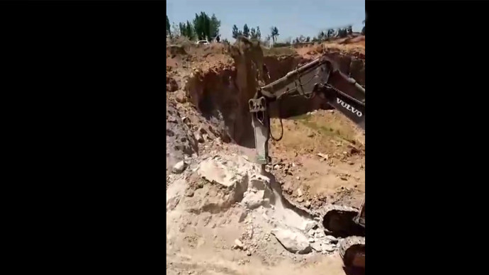 大型挖掘机和大石头的较量,结果还是要炮锤出场!