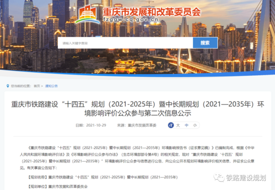 重庆市铁路建设“十四五”规划暨中长期规划二次环评公示