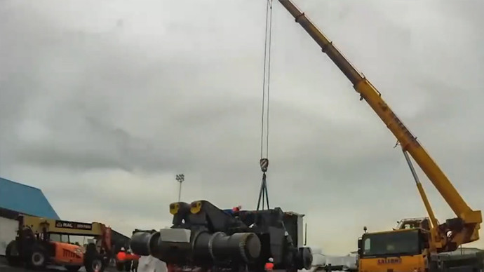 多角度实拍! 800个轮胎特种车登船!