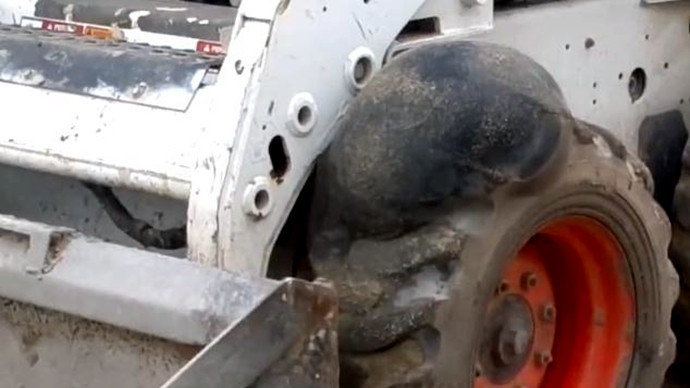 铲车轮胎突然发生异样,工人们看到后都不敢走上前了!
