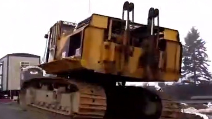 新买的钩机,刚到家就翻了