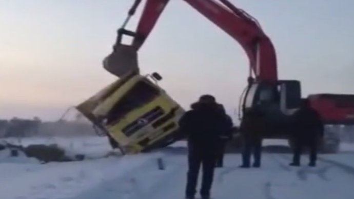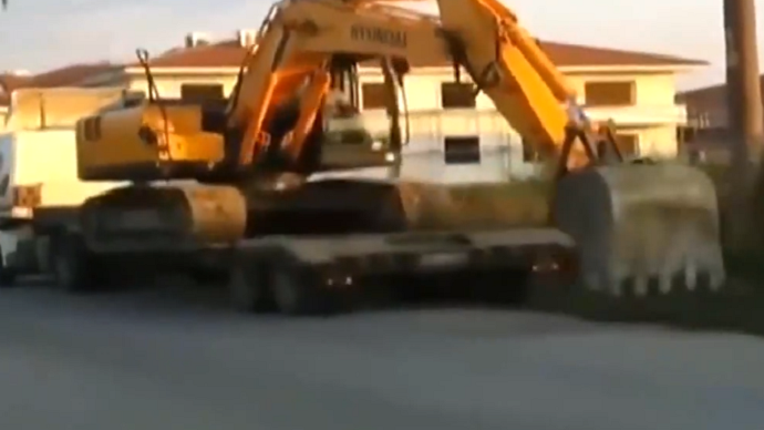 挖掘机看货车司机不在,自己上起了板车!
