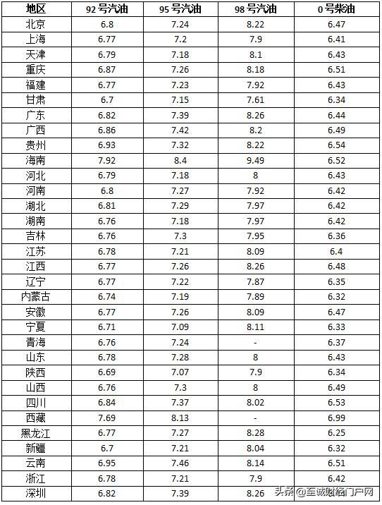 今日油价|2019年12月11日最新油价(汽油,柴油价格)