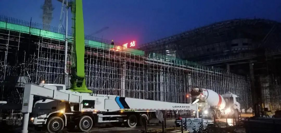 雷萨产品|雷萨泵车顺利完成首泵600方, 助力安庆西站建设工作