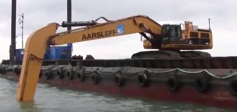 实拍:卡特彼勒长臂挖土机清理淤泥,背景音乐是司机内心写照