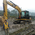 上次是工地小松鞋子掉了,这次工地上一台卡特313,不止鞋子掉了,还把脚弄崴了。导向轮、张紧油缸都跟着出来透透气了,真是让人头大。