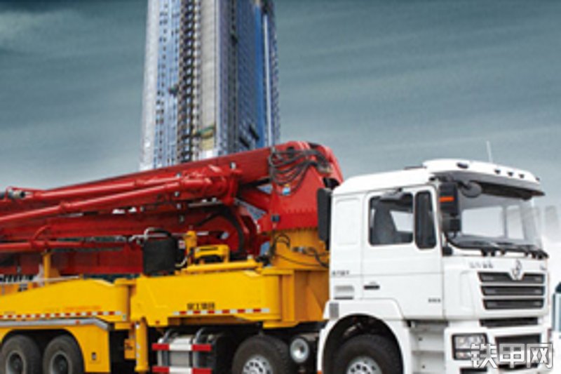 宜工JTZ5430THB 45米臂架泵,额定工作压力为32Mpa,泵送频率为26rpm,料斗容积为0.6m3,上料高度为1450mm,油缸缸径×行程为φ140×1800mm,最大布料高度44.7m。
